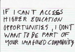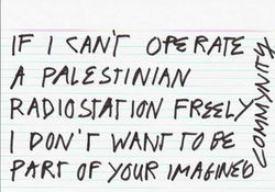 Benedict Anderson described nations as i m a g i n e d c o m m u n i t i e s —constructed affinities held together by symbols, narratives, in- and exclusions. This work borrows that notion, but reconfigures it through refusal. As affirmative refusal that reverberates across different contexts, adapting to prohibitions that mark the limits of belonging.